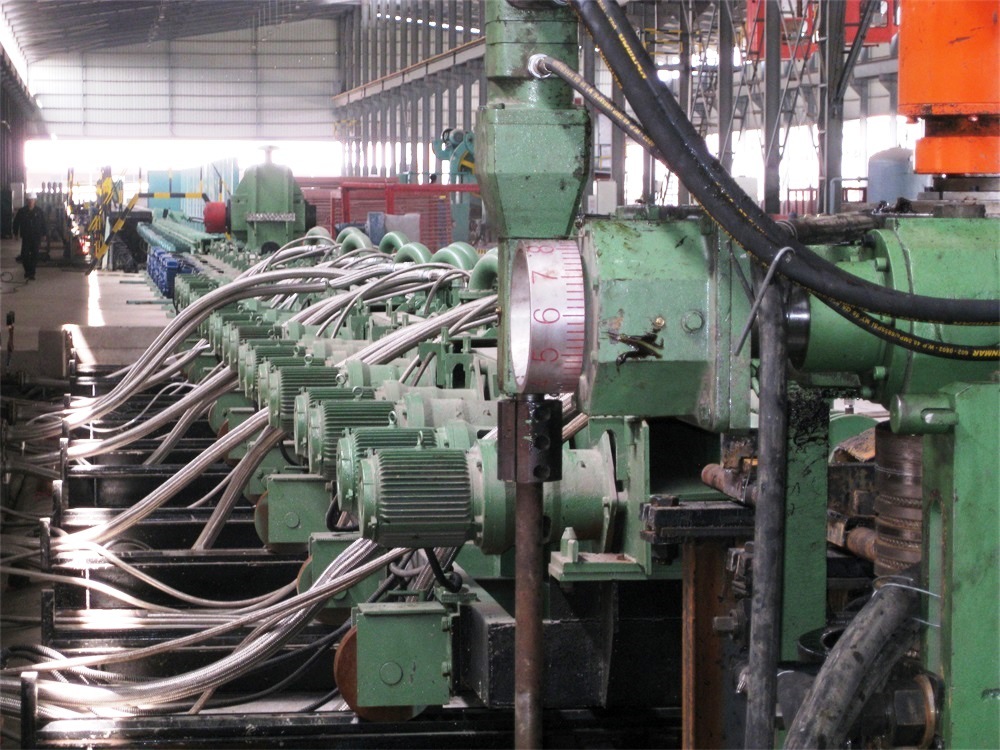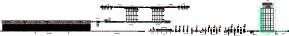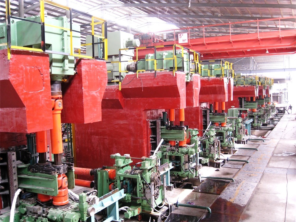 可生产直径Φ10-Φ60mm的各种圆棒,直径Φ10-Φ25mm的各种螺纹钢棒材。钢种:优质碳素钢、低合金钢、弹簧钢、合金钢等,原料一般为150×150×(6000-1200)mm,坯重1~2吨。最高轧制速度18m/s,单线轧制+切分轧制生产能力最高可达约100万吨/年。